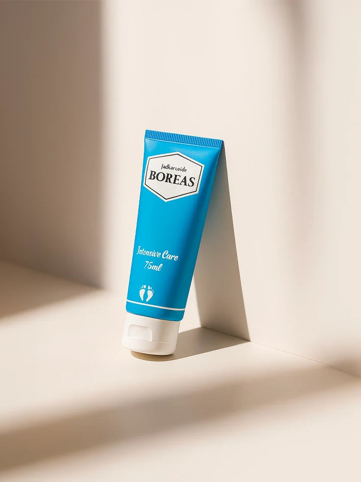Täyteläinen ja hoitava Boreas-jalkavoide sopii koko perheelle.